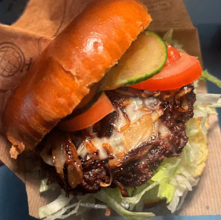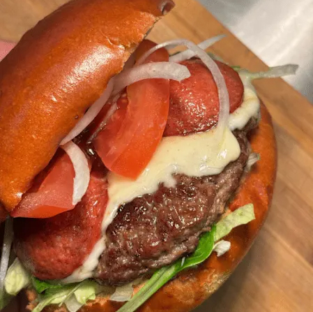 Saftiges, regionales Rindfleisch im fluffigen Brioche-Bun, verfeinert mit cremigem Gorgonzola, frischem Salat, aromatischen Tomaten, knackigen Gewürzgurken, gegrillten Zwiebeln und unserer Burgersoße. Ein Burger für echte Genießer.