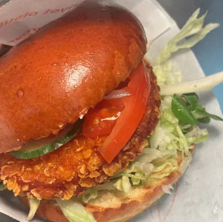 Knusprig paniertes Hähnchenfilet im fluffigen Brioche-Bun, dazu frischer Salat, saftige Tomaten, Gurken, Ketchup und Mayonnaise. Der perfekte Chicken-Burger saftig, knackig und voller Geschmack.