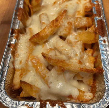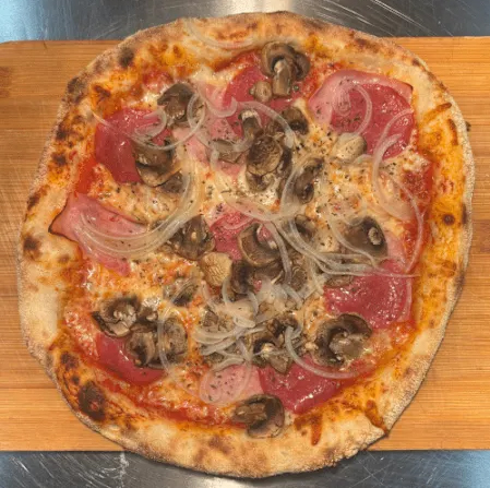 Der Klassiker: Ofenfrisches Teigschiffchen, üppig belegt mit einer Kombination aus zart schmelzendem Mozzarella und cremigem Weißkäse. Pur, mild und einfach köstlich.