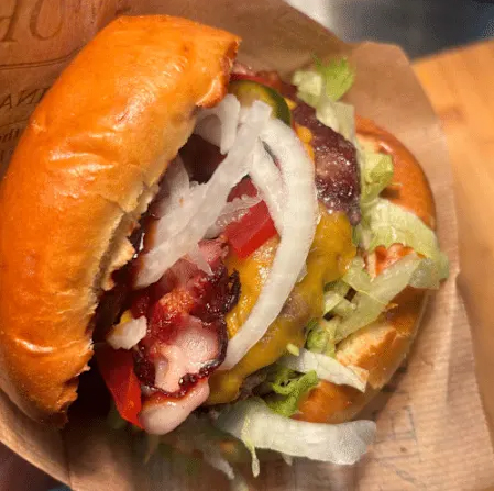 Saftiges, regionales Rindfleisch im fluffigen Brioche-Bun, belegt mit frischem Rucola, zartem Mozzarella, frischen Tomaten, knusprigem Bacon und verfeinert mit BBQ-Soße und feiner Crema di Balsamico. Italienischer Genuss trifft rauchiges BBQ-Aroma.