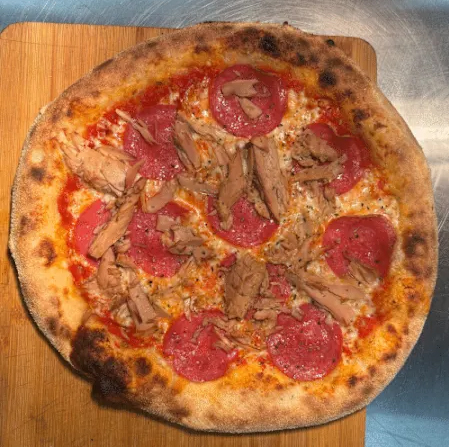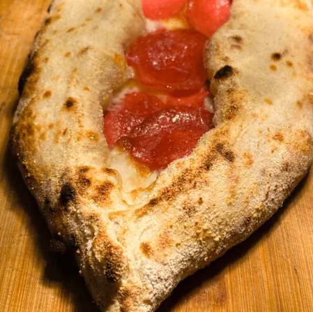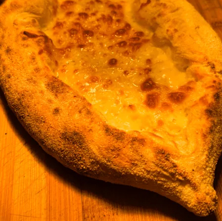 Der Klassiker: Ofenfrisches Teigschiffchen, üppig belegt mit einer Kombination aus zart schmelzendem Mozzarella und cremigem Weißkäse. Pur, mild und einfach köstlich.