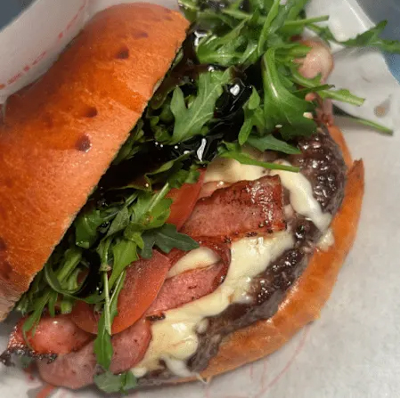 Saftiges, regionales Rindfleisch im fluffigen Brioche-Bun, belegt mit frischem Rucola, zartem Mozzarella, frischen Tomaten, knusprigem Bacon und verfeinert mit BBQ-Soße und feiner Crema di Balsamico. Italienischer Genuss trifft rauchiges BBQ-Aroma.